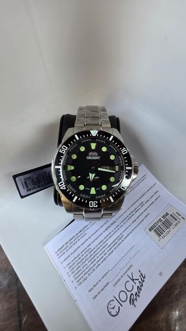 RELÓGIO ORIENT 469SS073D1SX 500M. NETUNO. COM ACESSÓRIOS. NUNCA USADO. FUNDO PRETO.