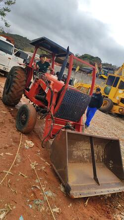 TRATOR DE PNEUS MASSEY FERGUNSON 290, ANO 1996, EQUIPAMENTO COM GRUA, PAROU EM FUNCIONAMENTO NO ESTADO QUE SE ENCONTRA, RETIRADA EM ATIBAIA-SP