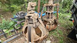 02 GRUAS/GARRA SUCATEIRA, 04 UNHAS, FALTA PISTÃO NAS DUAS, NO ESTADO QUE SE ENCONTRA.