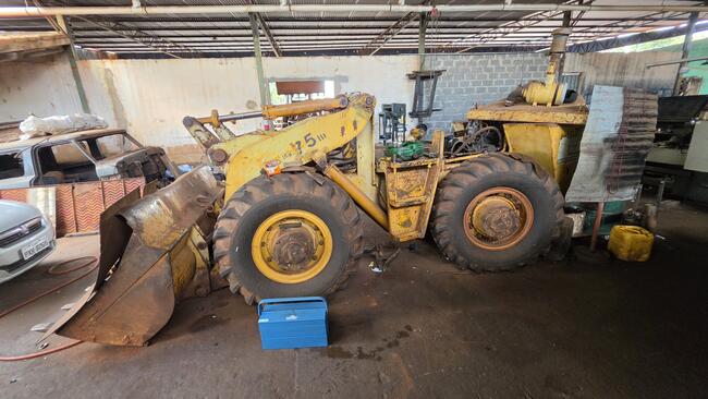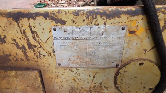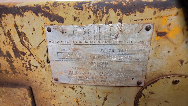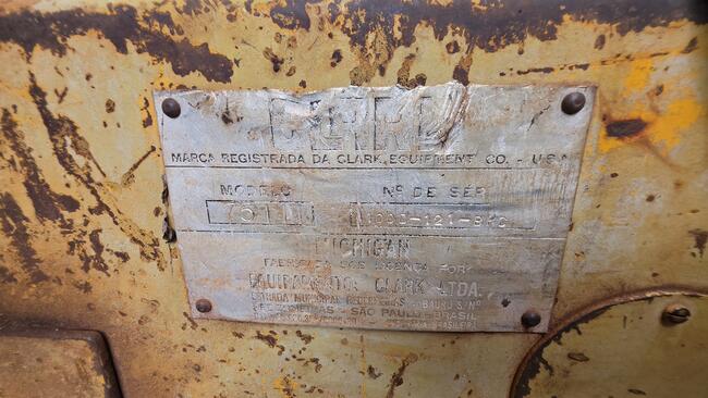 PÁ CARREGADEIRA CLARK MICHIGAN 75III, ANO DESCONHECIDO, MOTOR MERCEDES REGULAR, DEFEITO DE CÂMBIO E FORÇA, ESTÁ DESMONTADO CÂMBIO E CABINE, PNEUS EM MÉDIO ESTADO, SEM BATERIA, NUMERO DE SÉRIE 4100D-121-BPC, NO ESTADO QUE SE ENCONTRA