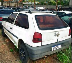 Descrição: Veículo VW Gol 1000 MI, duas portas, cor branca, ano/modelo 1997/1998, mal